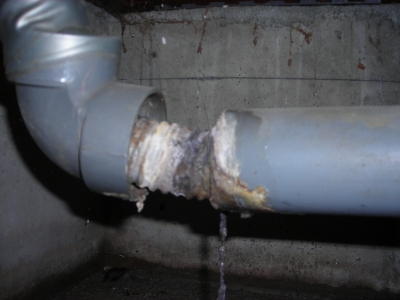 施工不良か経年劣化か?排水管のジョイント部が外れてしまっていました。