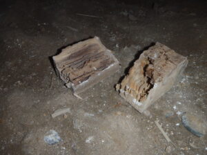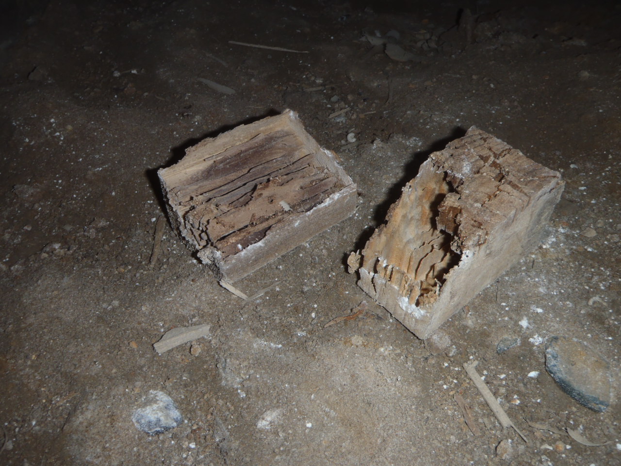地面に接した木材の内部はこんなにスカスカなのです。地面に木材を置いてはいけません。
