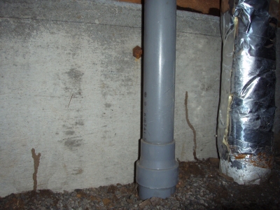 伊那市の住宅では、地面から黒い線のようなものが2つ上方向に伸びています。これが、「蟻道(ぎどう)」といってシロアリがつくる活動用のトンネルです。