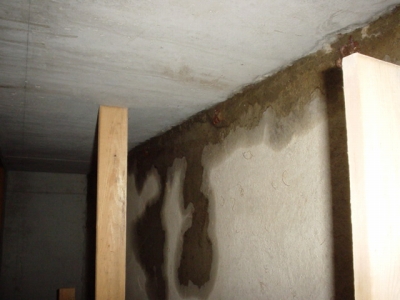 基礎にあいている通風口の上部を写したものです。経年のためか、元々の施工不良のためか、壁の内部で水漏れがおきていました。