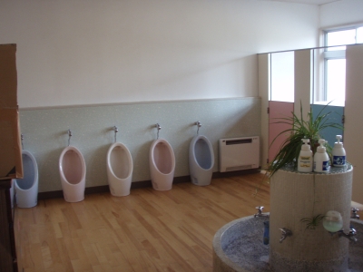 保育園のトイレから羽アリが発生しました。ご覧の通り見た目は大変綺麗ですが、目に見えない床下はシロアリの被害が広がっていました。原因を探ると、構造に難点があることがわかりました。