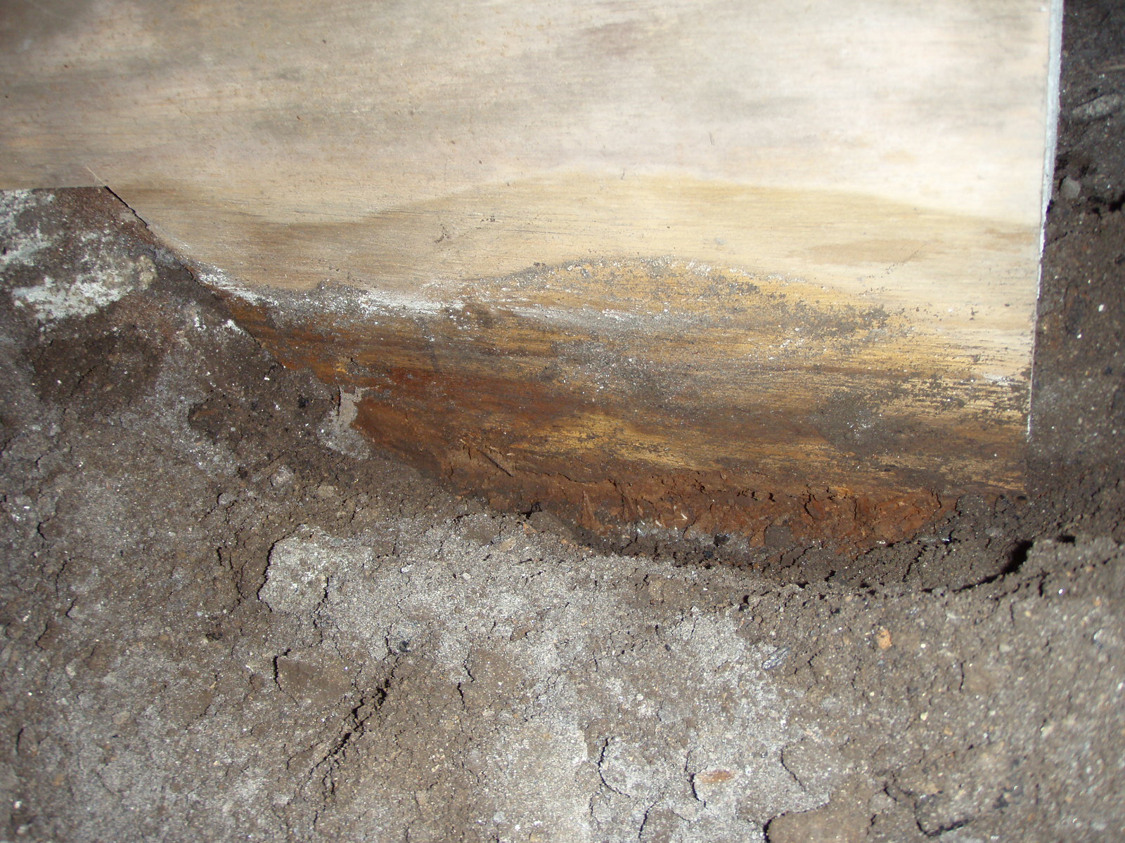 豊丘村のシロアリ工事事例|築28年木造住宅 土間コンクリート打ち用型枠木材の被害
