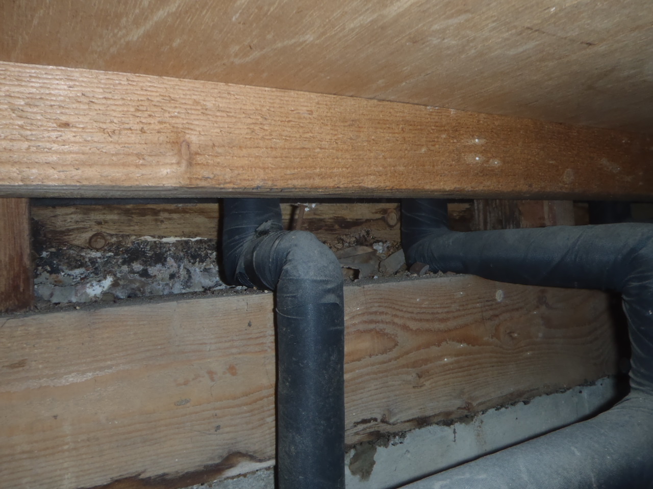 配管の不具合もあるのでしょうか。木材が湿っています。シロアリを呼び寄せます。