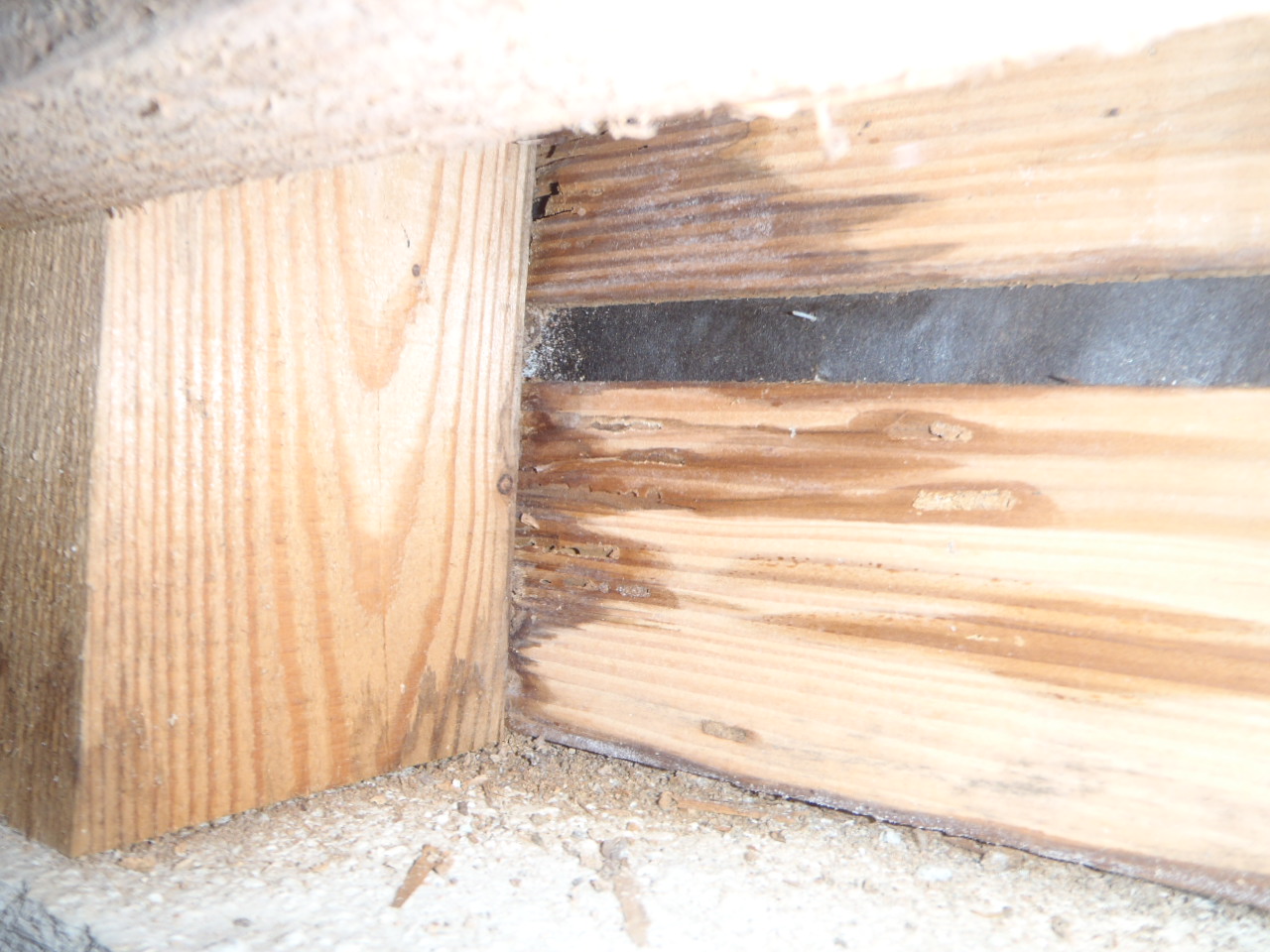 特に湿気や通気不足が原因となり、被害が進行している状態でした。被害状況を確認したうえで、シロアリ工事を実施しました。
